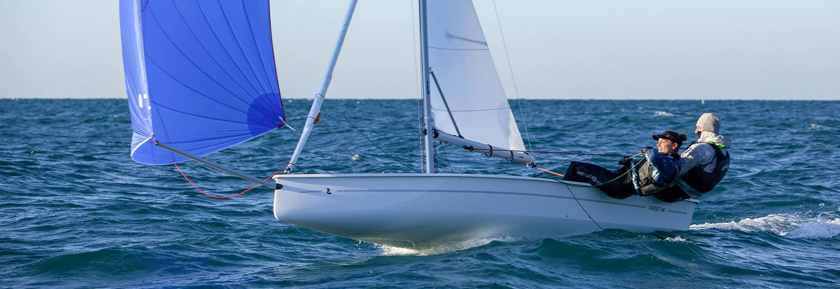 With a wide and flat hull shape, sharp chines, and a piercing bow, the First 14 provides exceptional stability and safety. This design ensures a comfortable and secure sailing experience, even without the need for a trapeze.