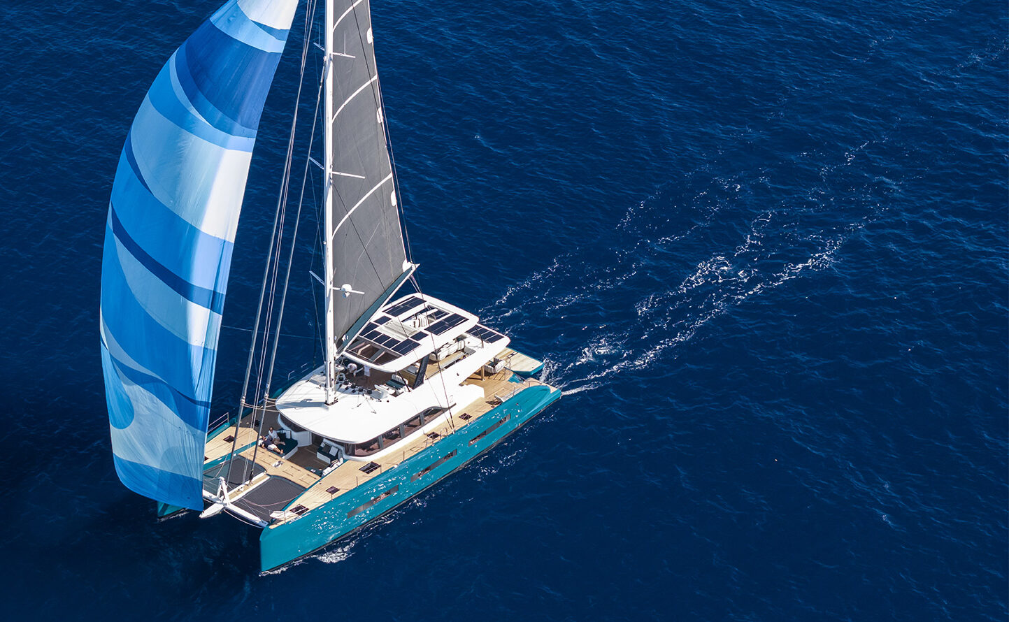 On the interior, saloon with flush floorboards facilitates movement about the catamaran. Living spaces have been designed to experience life on board naturally, in complete freedom. Turned toward the exterior, the EIGHTY 2 features the design codes of seaside villas, offering a 360° view to admire the horizon.